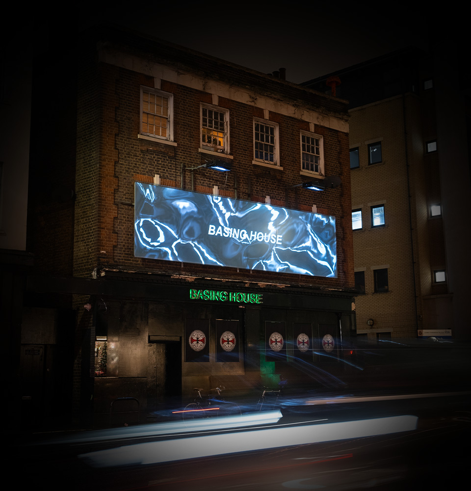 Basing House, a well-known venue in Shoreditch, London, where we already have a permanent installation, presented us with an exciting and challenging project: to create an outdoor digital billboard within a specified budget. The client was highly satisfied with the outcome, noting that the billboard has become a valuable asset for their venue. It now serves as a key feature for event organizers, helping them with event promotion in one of London’s most vibrant neighborhoods. To achieve this, we proposed a high-impact digital signage solution using a screen powered by two ultra-short-throw (UST) projectors. This setup required innovative problem-solving and technical expertise, as UST projectors demand precise placement for optimal results. Additionally, we designed and assembled custom weatherproof enclosures to protect the projectors from environmental elements while maintaining proper ventilation and accessibility.