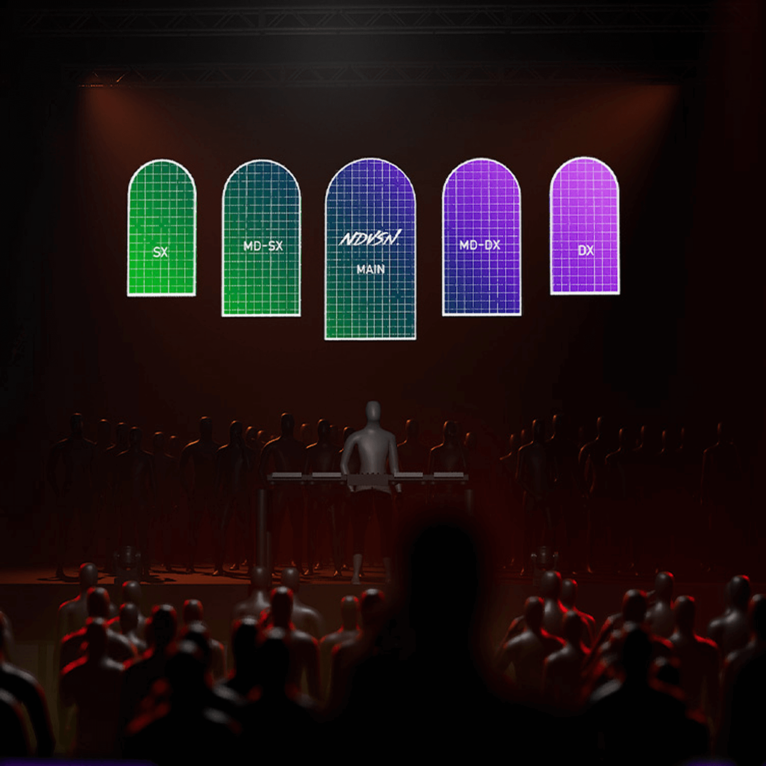 We use cutting-edge software and creative workflows to design immersive 3D visuals, real-time reactive effects, and interactive screen content tailored to each unique project. Our process blends technical precision with artistic vision.